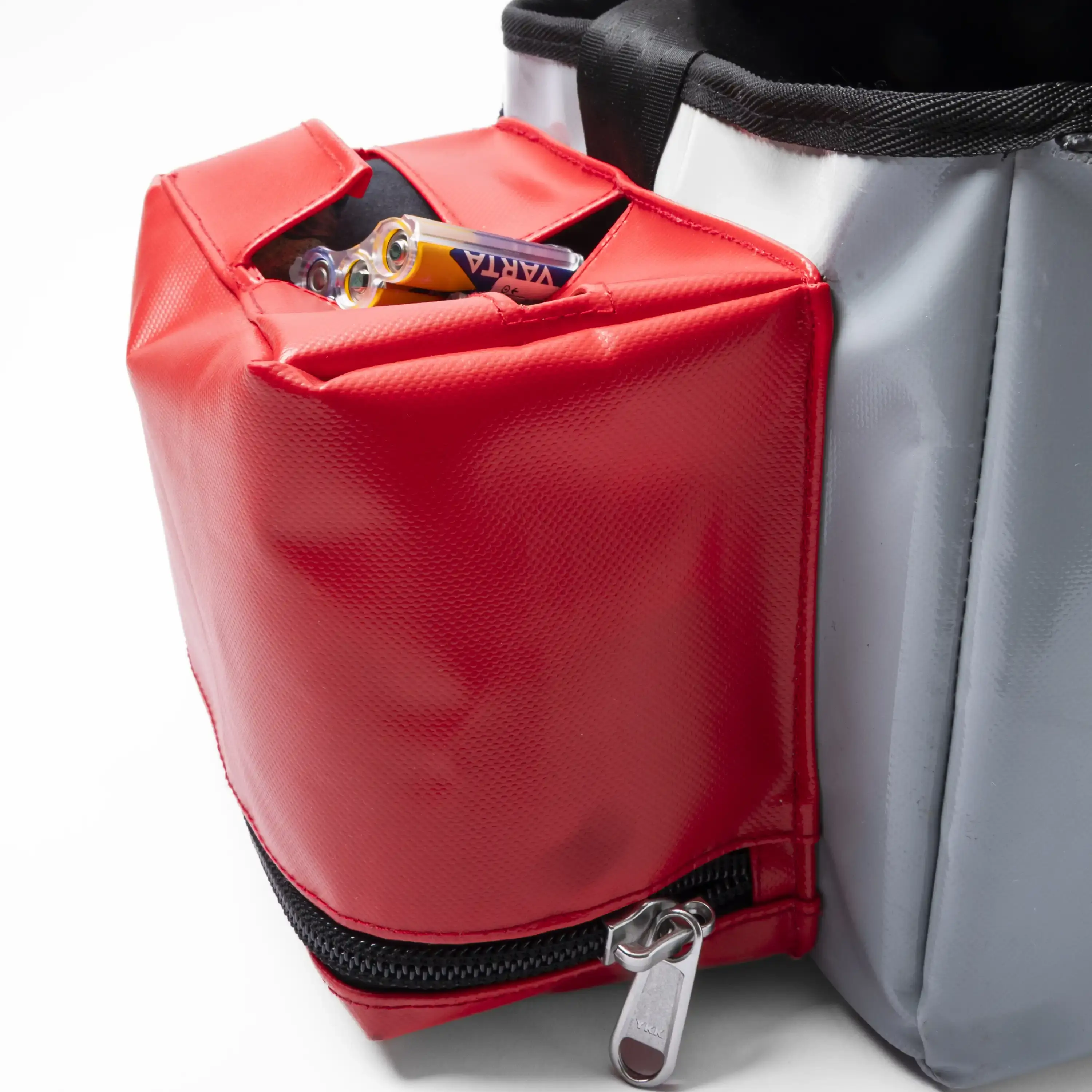 Every LUBIE SPL bag is built around one principle: the right compartment, exactly where your hand expects it and in that order. Dedicated sealed pockets separate e-waste from hydrocarbons. Push-pocket battery access lets you drop-and-swap used/new batteries combined with individual grease cartridge pockets.